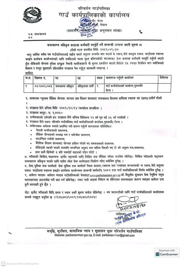 Home » जनस्वास्थ्य अधिकृत करार सेवाका लागि विज्ञापन
