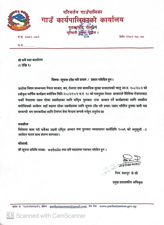 - प्रदेश सरकार,भाैतिक पूर्वाधार विकास मन्त्रालय (बुटवल)