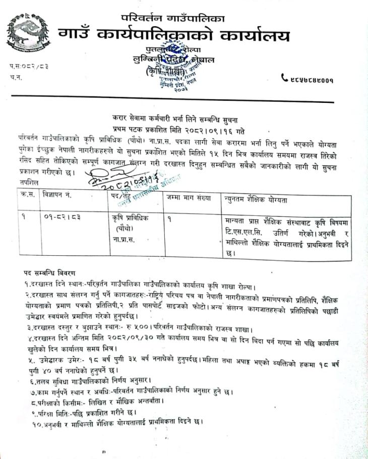 करार सेवामा कर्मचारी लिने सम्बन्धी सूचना
